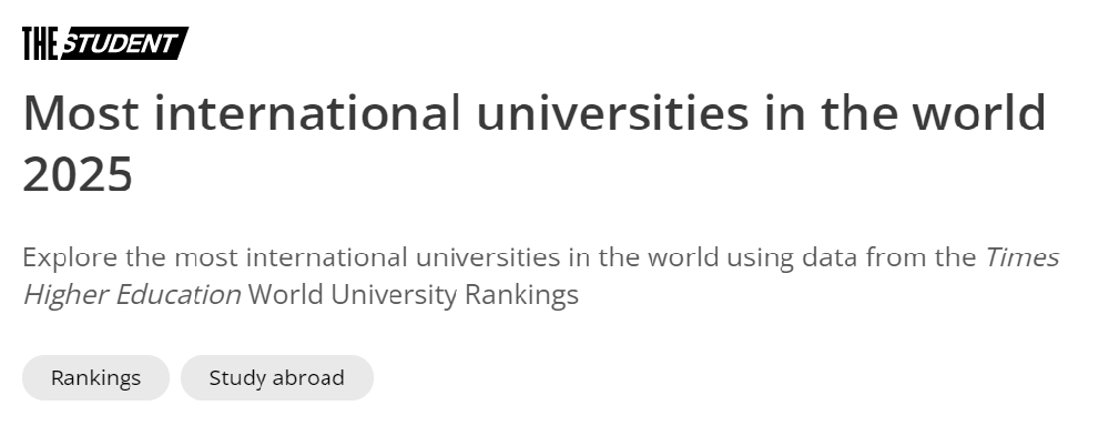前段时间,泰晤士高等教育重磅发布了2025年全球国际化大学排名。